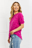 This top takes the animal print a step further by adding a textured dimension, making it even more playful and fun. The rich magenta makes a bold and vibrant statement, while the relaxed fit and button details make this top easy to pull off. Tone down the bright color with light-wash jeans, or go bold by color blocking your look with other bright pieces.
