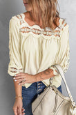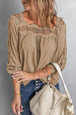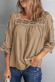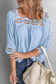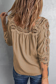 Crochet Openwork Three-Quarter Sleeve Blouse