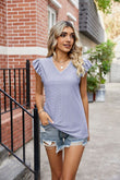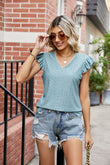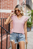 Eyelet Flutter Sleeve Scalloped V-Neck Top