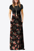 Full Size Printed Round Neck Short Sleeve Dress with Pockets
