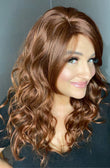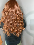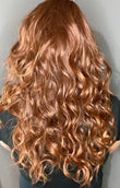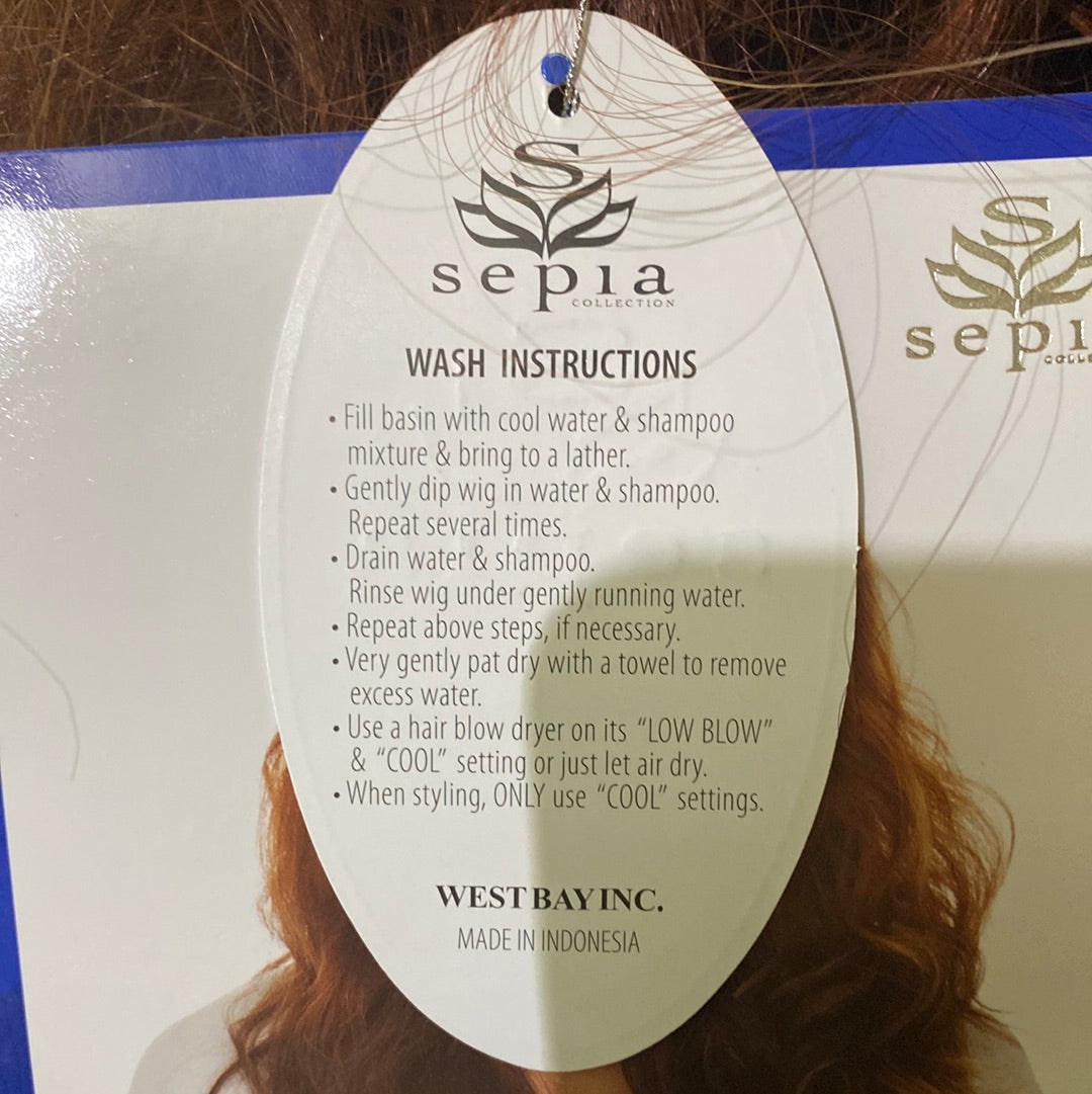 Gabby by Sepia Synthetic wig and heat friendly up 340 degrees. Beautiful rich red in color T33/130. This wig has a beautiful curl pattern and curtain bangs. Open weft. Cap fits up to 21 inches, on the smaller side.