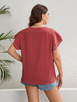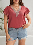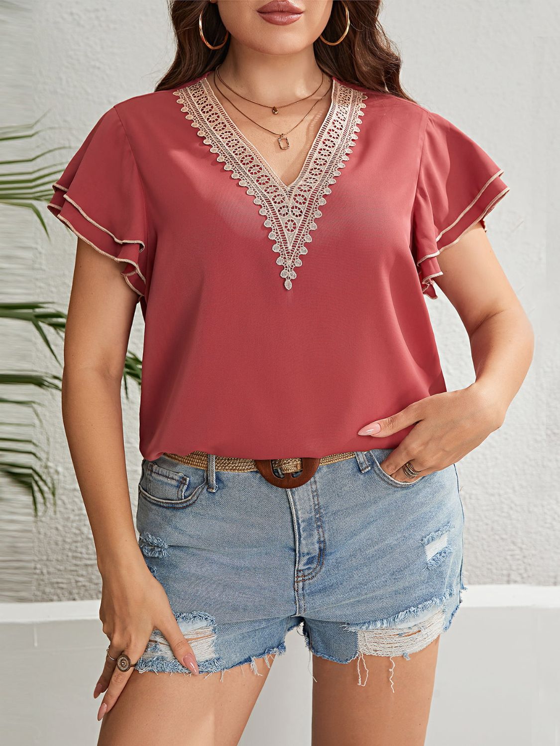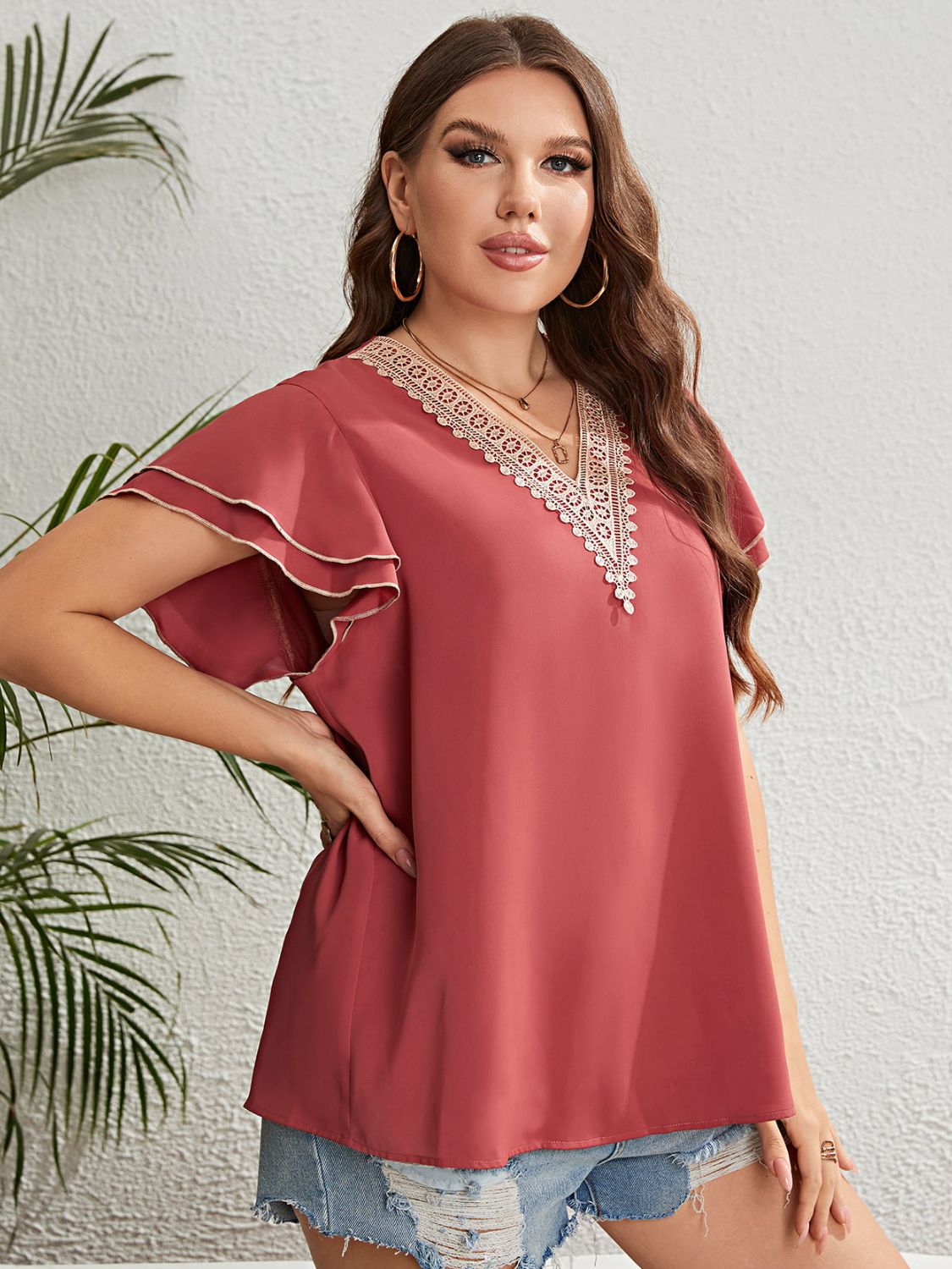 Plus Size Contrast V-Neck Layered Flutter Sleeve Blouse