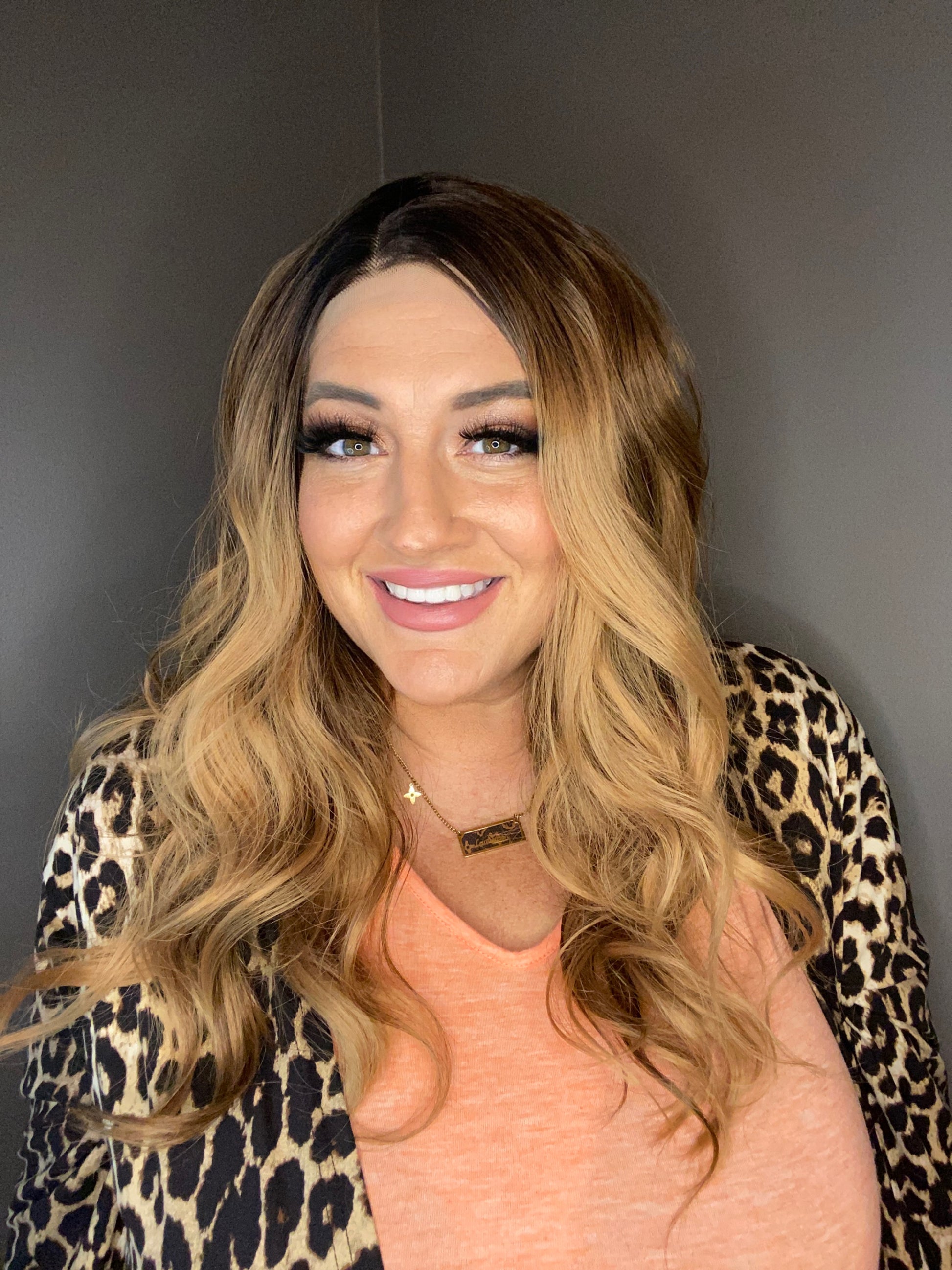 Her colors are gorgeous! Beautiful like a summer sunset, she has warm tones throughout. Level 5 regrowth with warm cinnamon toffee coloring. 13x4 lace front, closed weft, 140% density, adjustable straps and added combs for security. Fits average head sizes up to 22 inches.