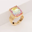 Square Glass Cushion Cut Cocktail Adjustable Wire Ring