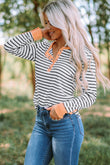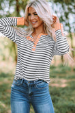 Our Striped Contrast Trim Quarter Snap T-Shirt is a must-have for your everyday wardrobe. Featuring striped design and contrasting trim at the neck, this t-shirt is the perfect piece to pair with your favorite jeans or shorts.