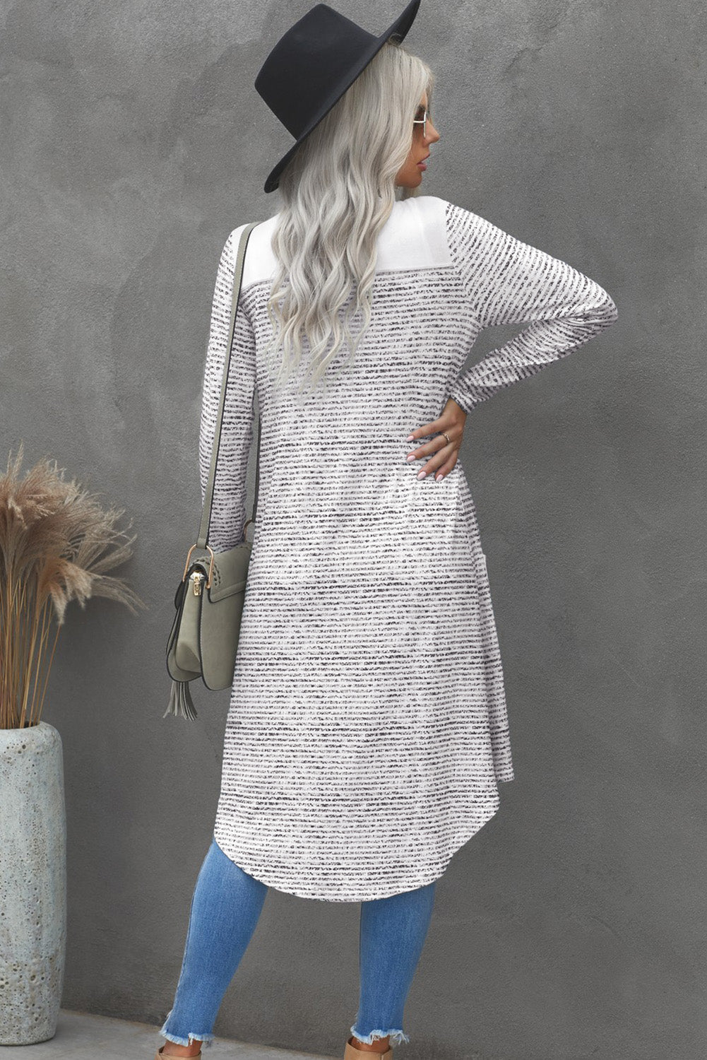 Striped Leopard Patchwork Duster Cardigan with Pockets