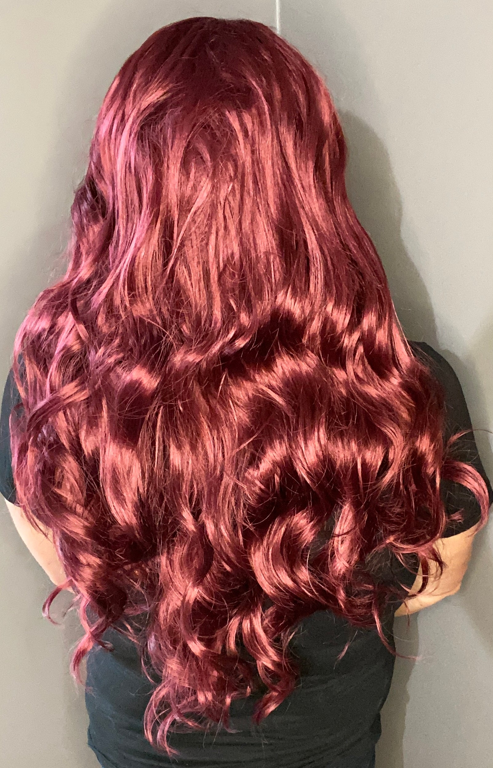 Sultry and seductive is the beautiful Sydney! Long 23 inch flowing curls in a beautiful red mahogany color. Heat friendly synthetic fiber blend, can withstand heat up to 325 degrees. 13x4 frontal lace gives a natural appearing hairline and interchangeable part. Closed weft, cap is complete with adjustable straps and clips for added security. Fit’s average head sizes up to 23 inches.