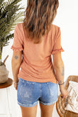 Textured V-Neck Flounce Sleeve Blouse
