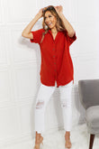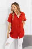 Zenana Full Size Summer Breeze Gauze Short Sleeve Shirt in Copper